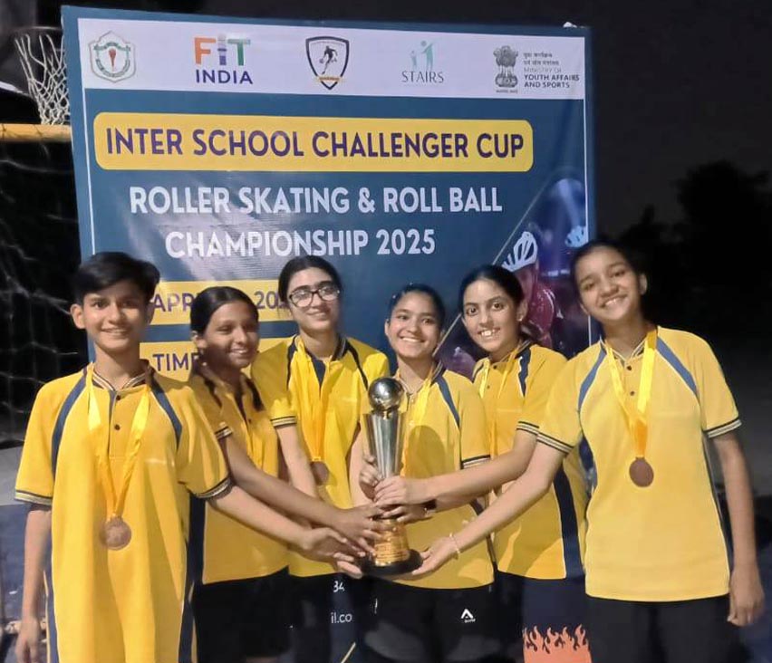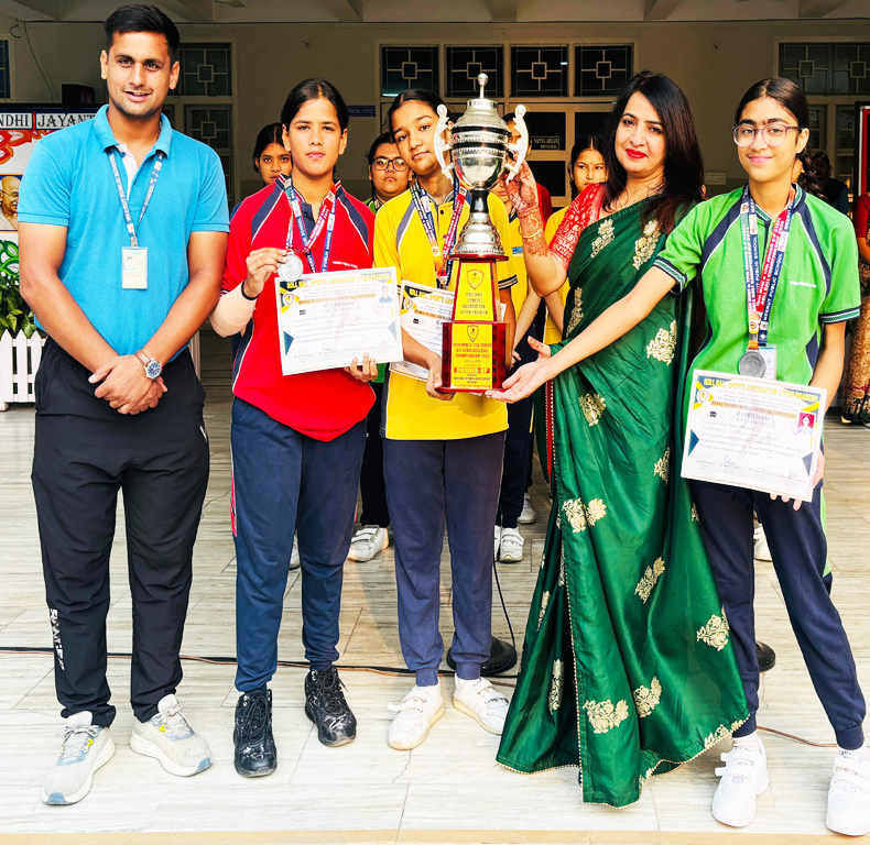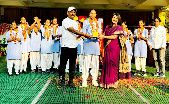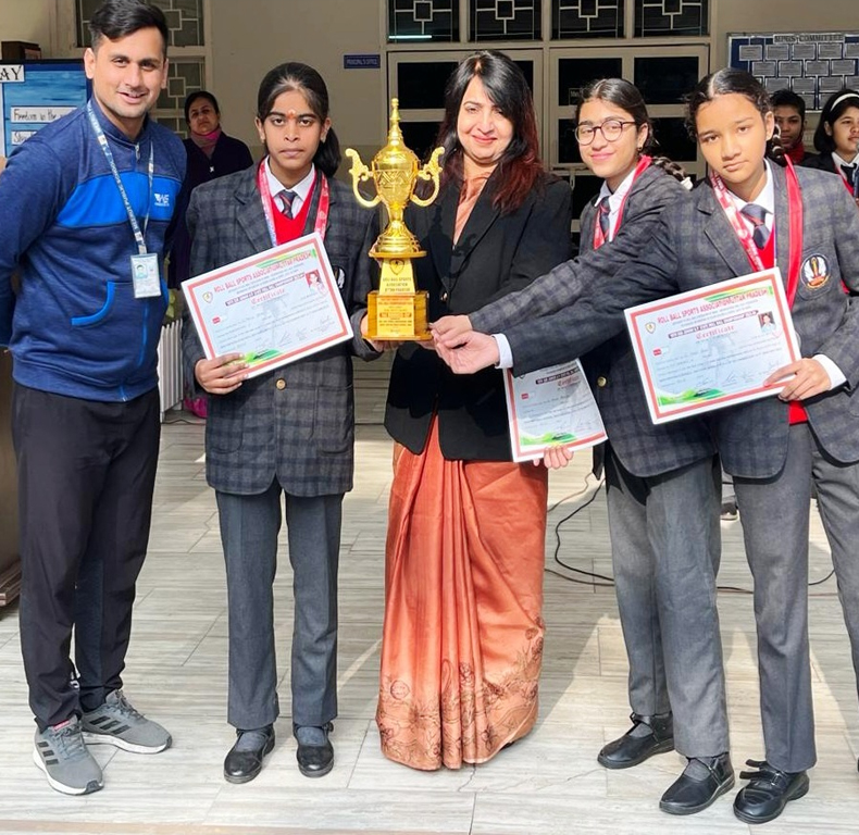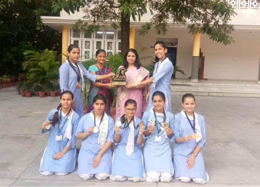 sports-Star Vannya Bhardwaj (VI C), Tanvi Saini (VI D) & Manya Verma(VII E) - The Winners in the 16th Sub- Junior Under 14 Roll Ball State Championship,Agra