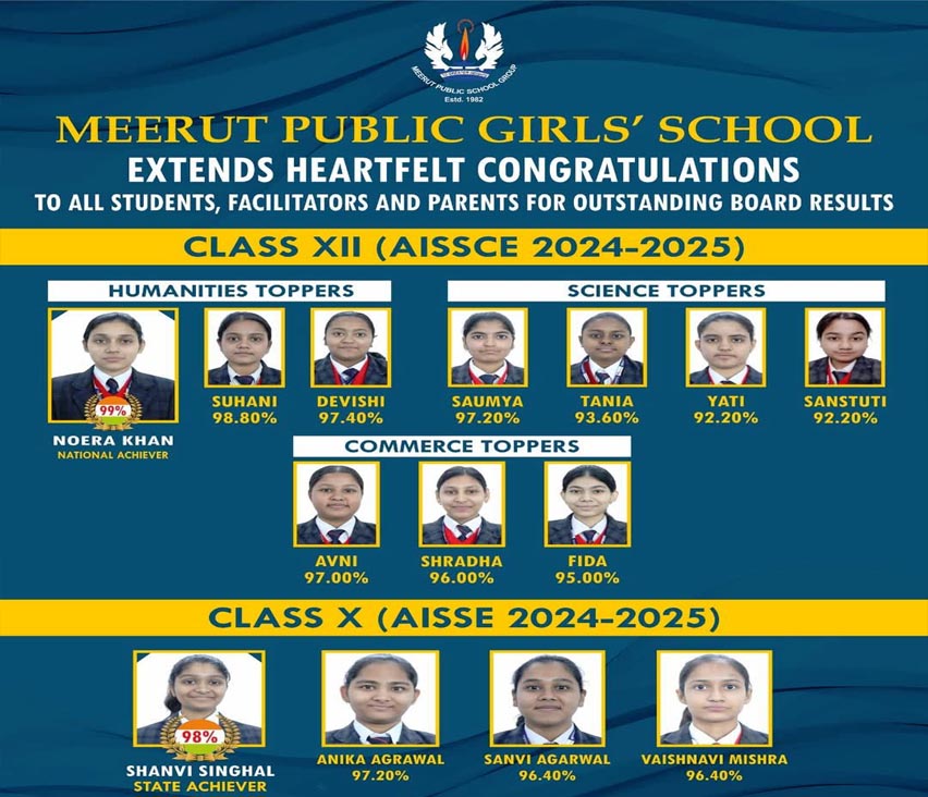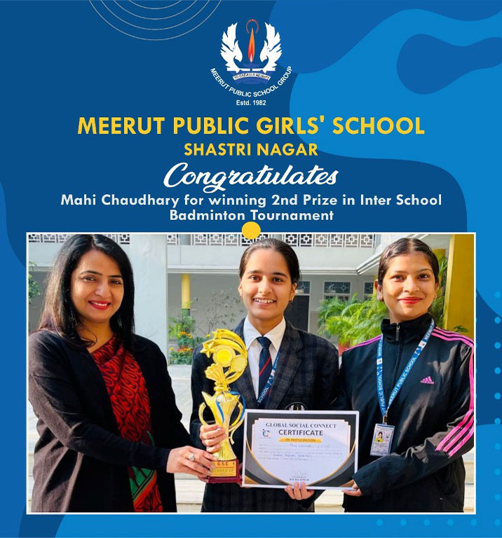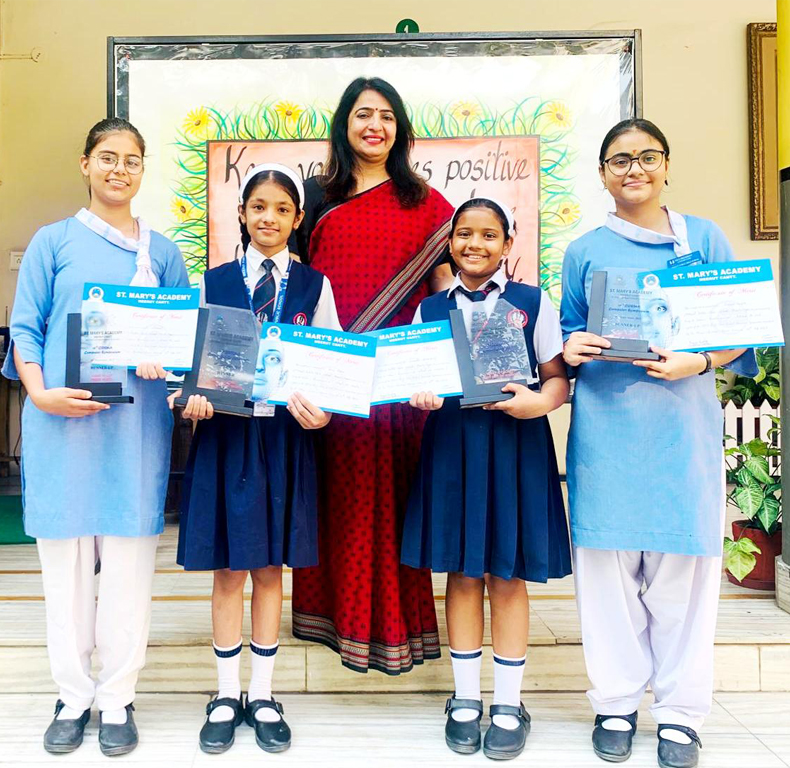 Gauri Sharma, Ishika Rastogi, Kritika Mishra, Chestha Singh and Jai Shree secured first position in Ad Zap promoting "Bestify Me App". Esha Mohan and Khushi Thakur also grabbed second position in Cyber Talk- Technology Isolates Us. These activities were organised under the Inter School Competition Cosma at St. Mary's Academy Meerut on 9 August 2019.