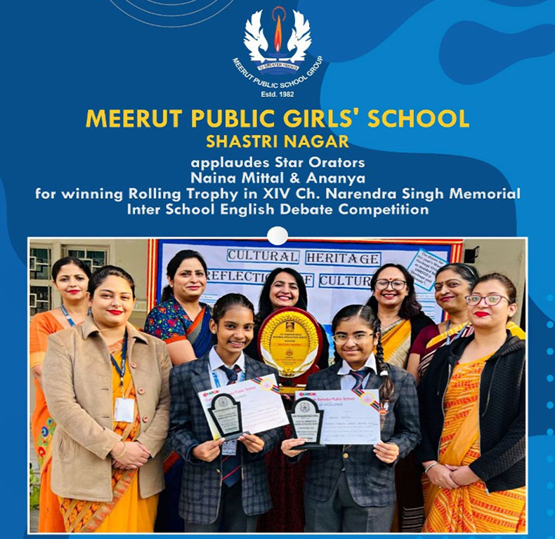 Shivangi Tomar and Vanshika Bhagat of Class XII secured second position in extempore spoken during XXIV Rev. Bro C.T Ritche Memorial Inter-School Debate held at St. Mary's Academy, Meerut.