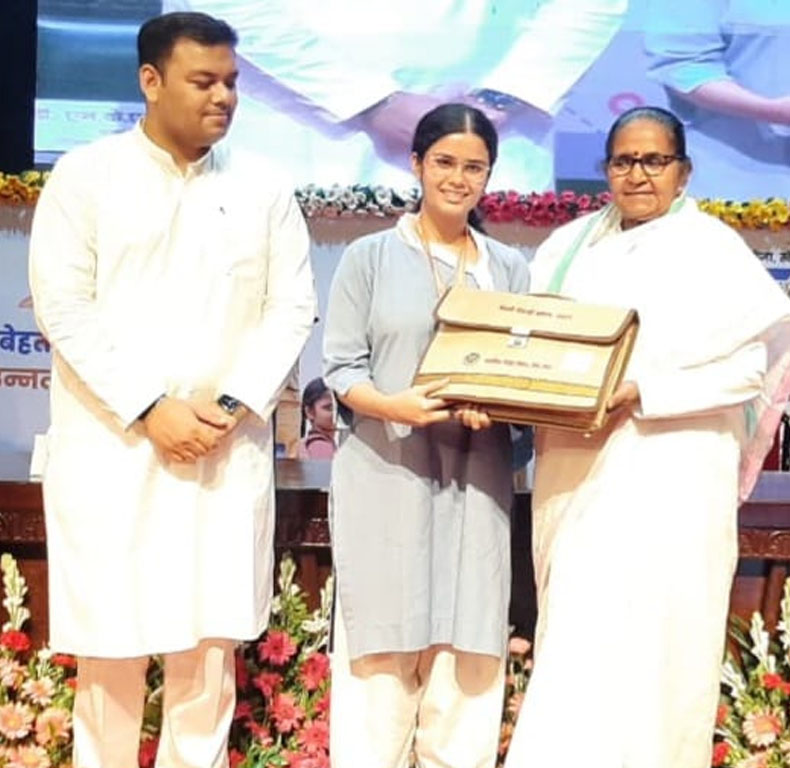 Tanisha mathur was felicitated with All Rounder Student Trophy by 'Bharat Vikas Parishad'.