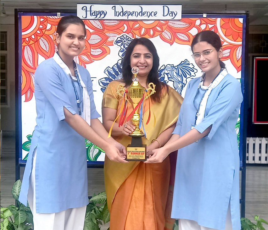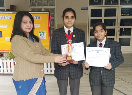 Ananya of class VII stood first among the Juniors and Chestha of XII-D stood first among the Seniors in Hindi Declamation Competition organized at The Aaryan Public School, Meerut.