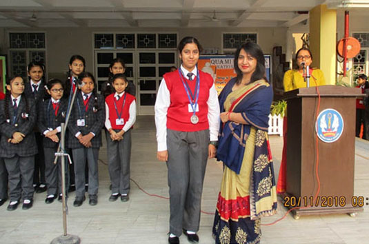 Vidhi Tomar, our boxing champ added glory to the school by punching off first position with a gold medal in C.B.S.E. North Zone Inter School Sports and Games Competition 2018-19 held at Haldwani Stadium.