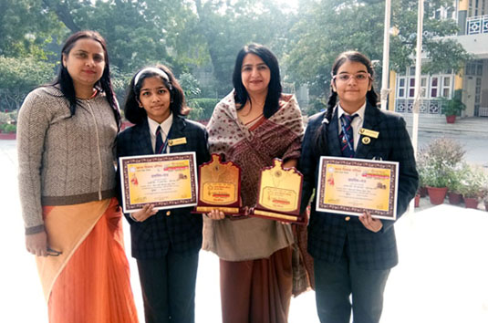 Girls brought laurels to the school securing the first position in National Group Song Competition (Hindi / Sanskrit) organised by Bharat Vikas Parishad.