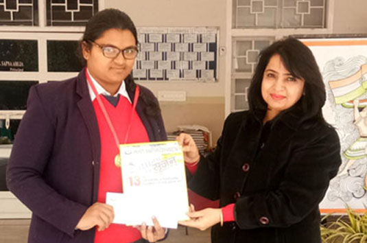 Chestha of class XI won First Position in Interschool Hindi Declamation Competition held at The Aryans, Meerut.
