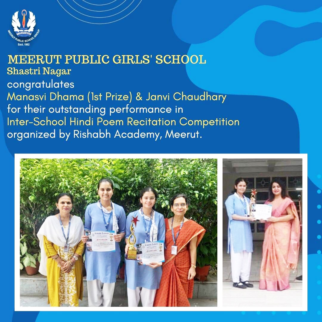 Deeksha Kajla and Sanjana Tomar grabbed the trophy in Hindi extempore organized at MPSFG Meerut on 31st Octorber,2019.