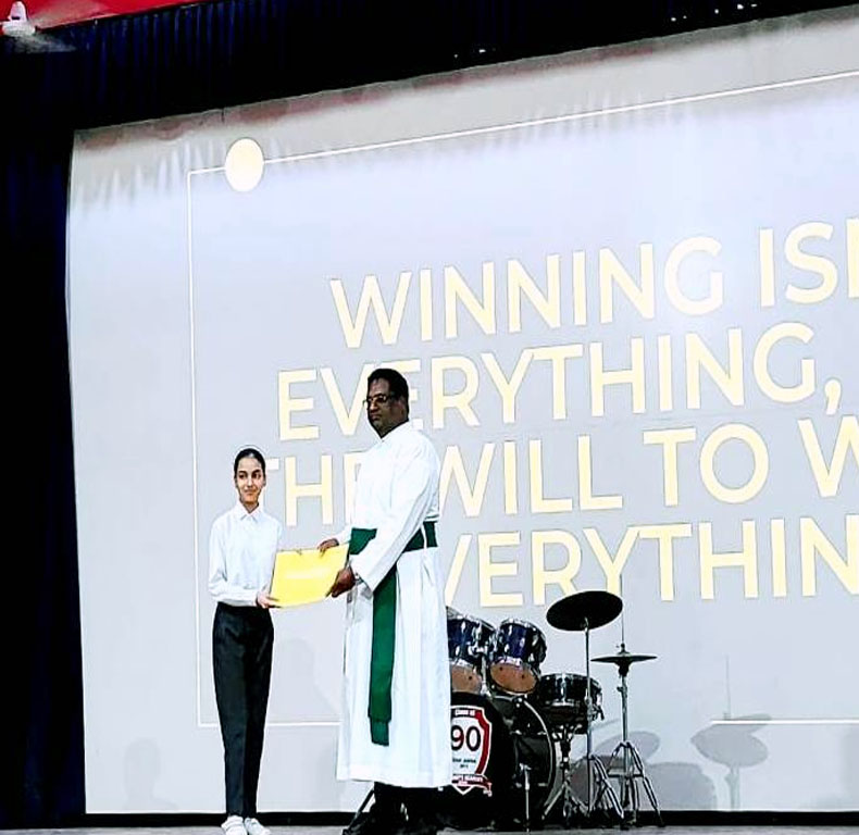 Pari Sharma of class XI grabbed Best Speaker Award along with a book gifted by Mr. A.K Gandhi, the writer, himself, in Inter School English Debate Competition held at Translam Academy International, Meerut.