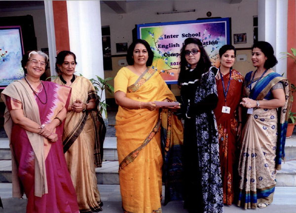 Gracy Singh receiving second prize in Inter School Debate Competition organized by Baleram Brijbhushan School.