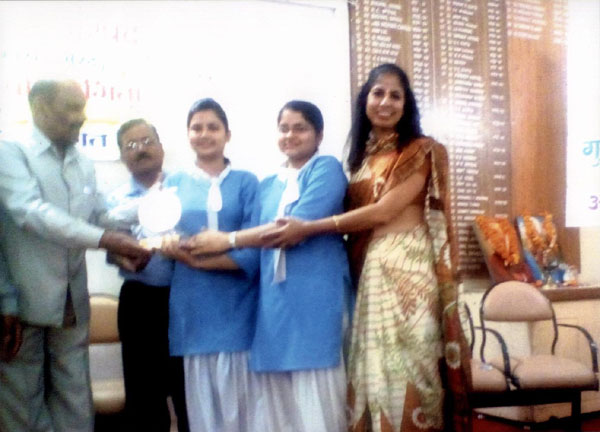 Anjali & Cyntheia receiving second prize in Inter School 'Bharat Ko Jano' Competition.