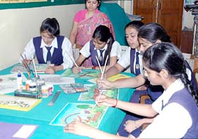 Art and Craft is the soul of Fine Arts. In Fine Arts lab students come into altogether different environment from classrooms surrounded by different style's of paintings, like portraits, still life, composition and landscape made of different types of surface with different mediums like water color, wax and oil. Different craft items are also displayed here to motivate the children.