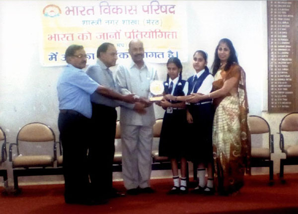 Gaya and Riya receiving second prize in Inter School 'Bharat Ko Jano' Competition.